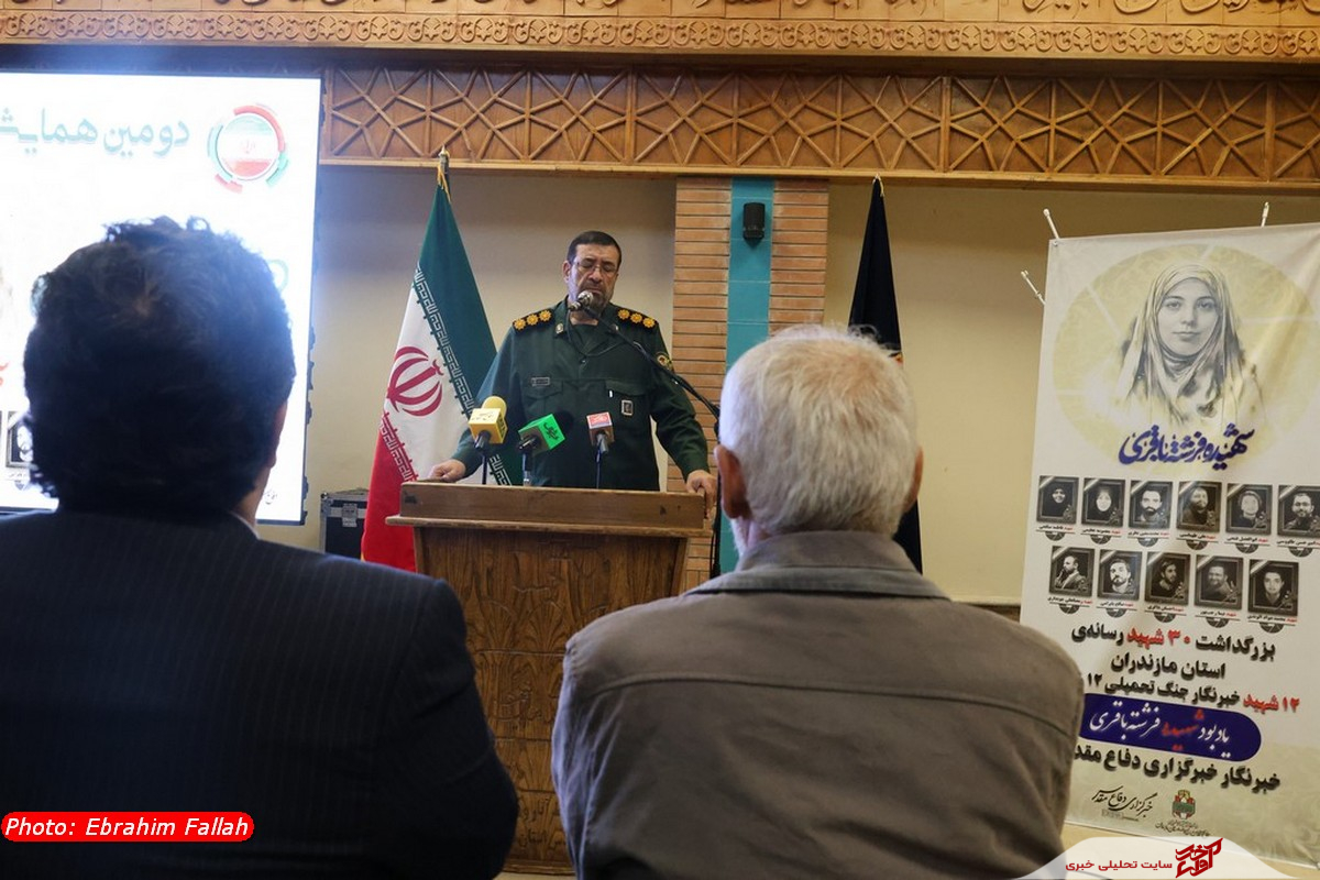 آزاده بابانژاد- آوای خزر: سرهنگ پاسدار محمد حسین سلامی عصر امروز در دومین همایش «رسانه و دفاع مقدس» بزرگداشت ۱۲ شهید خبرنگار دفاع ملی ۱۲ روزه یادبود شهیده فرشته باقری خبرنگار خبرگزاری دفاع مقدس، با تأکید بر اهمیت استقامت و فداکاری ملت ایران در دوران جنگ، گفت: ملت ایران با سرافرازی، با ایثار جان و مال خود در میدان مجاهدت حاضر شدند. دوران جنگ، دورانی بود که جوانان ما جبهه را به عنوان دانشگاه و مکتبخانهای مقدس میدانستند. جهاد در راه خدا را فرهنگی مقدس تلقی کرده و با باورهای مقدس خود در جبههها حاضر شدند.