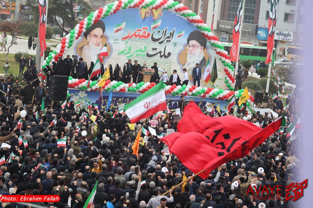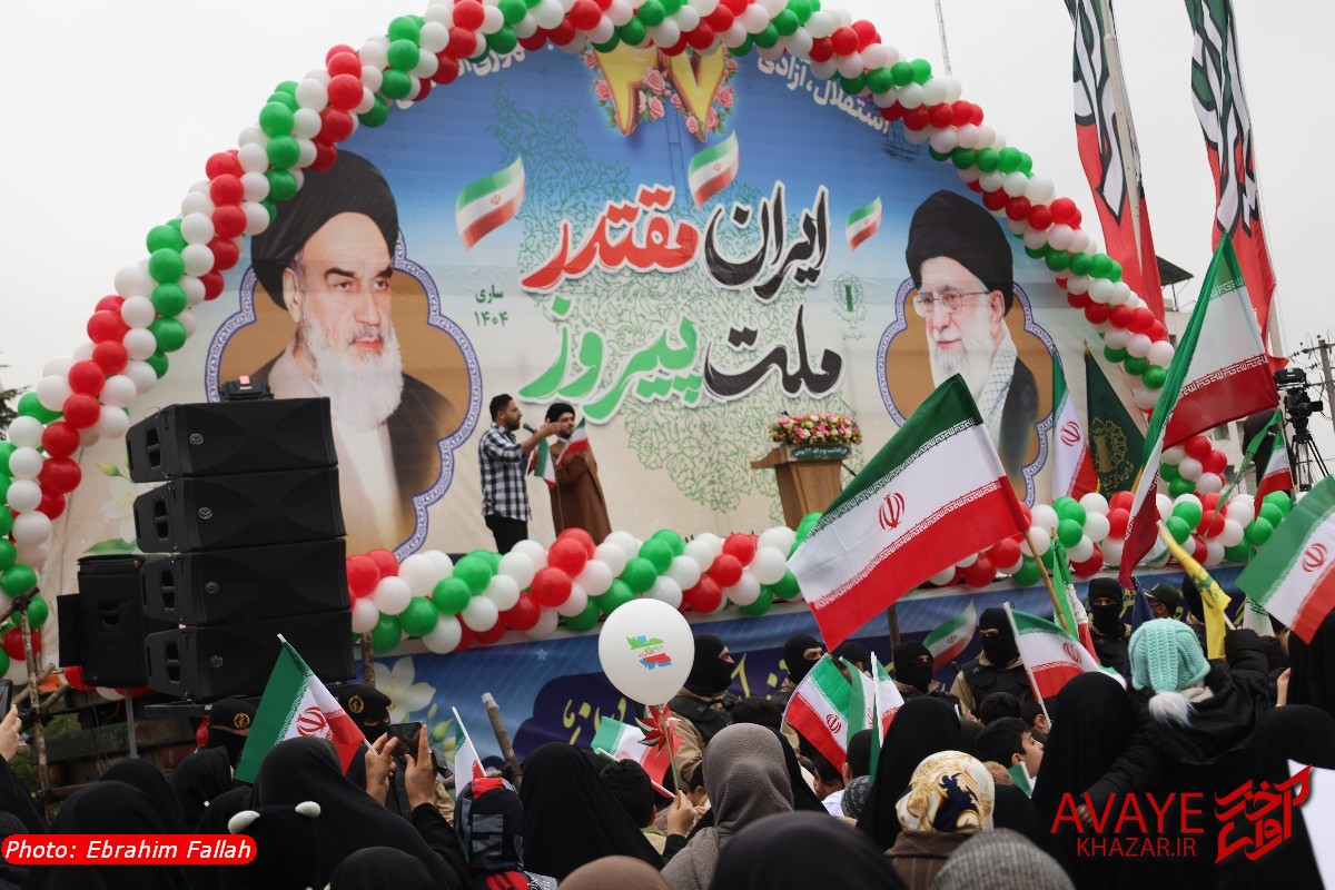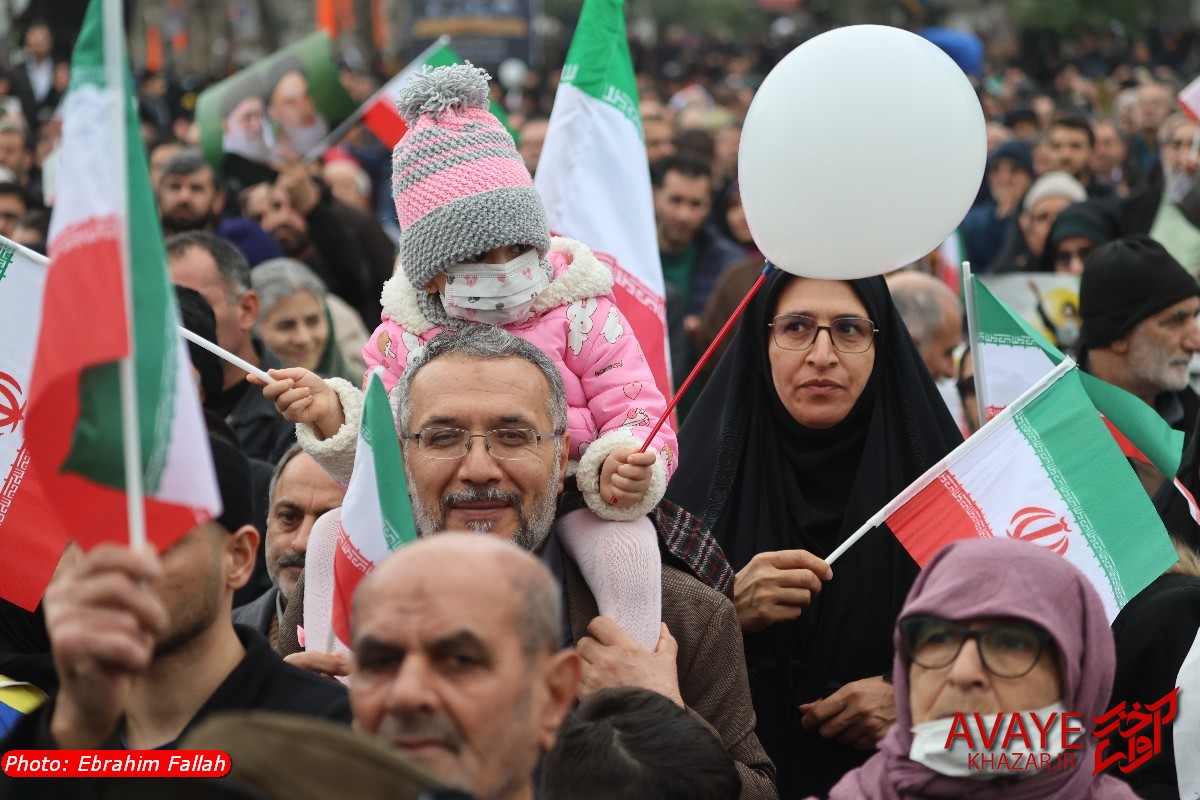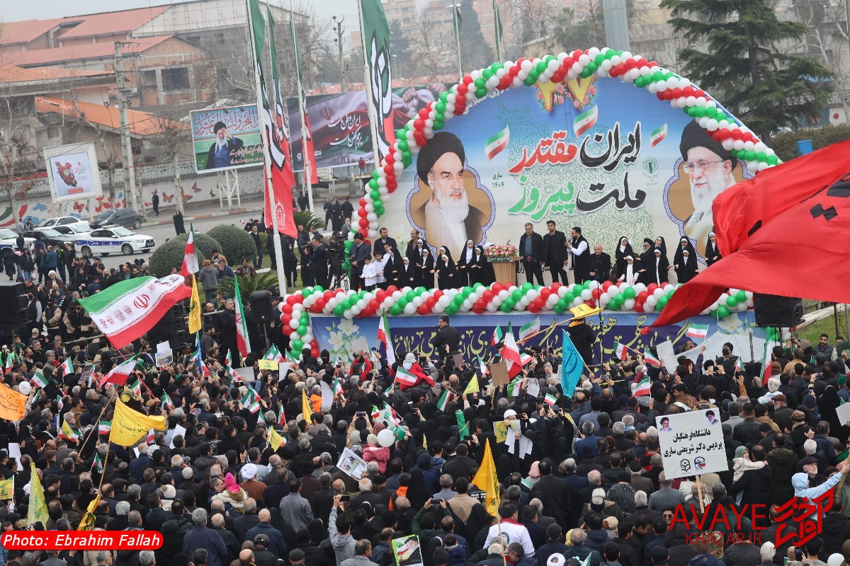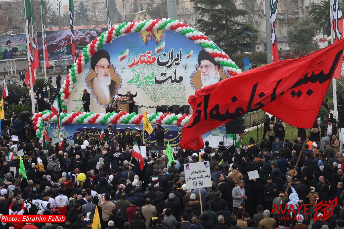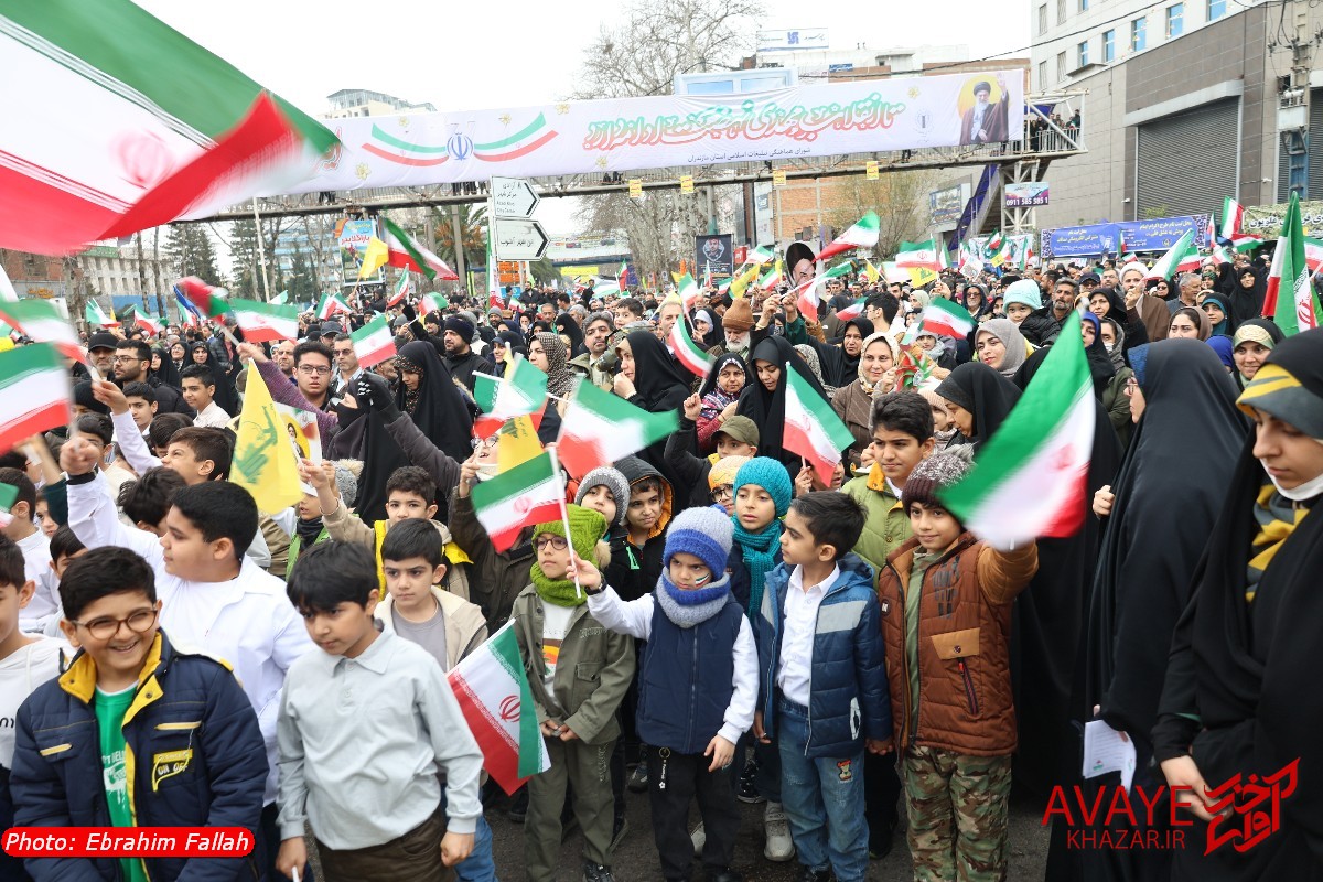 آوای خزر – راهپیمایی یومالله ۲۲ بهمن ۱۴۰۴ صبح امروز در ساری با حضور گسترده مردم از تمام سنین و اقشار برگزار شد و خیابانهای منتهی به مسیر راهپیمایی مملو از جمعیت شد. خانوادهها، دانشآموزان، دانشجویان و کارکنان دستگاههای اجرایی با در دست داشتن پرچم ایران و پلاکاردهای انقلابی، شعارهایی در حمایت از آرمانهای انقلاب سر دادند.