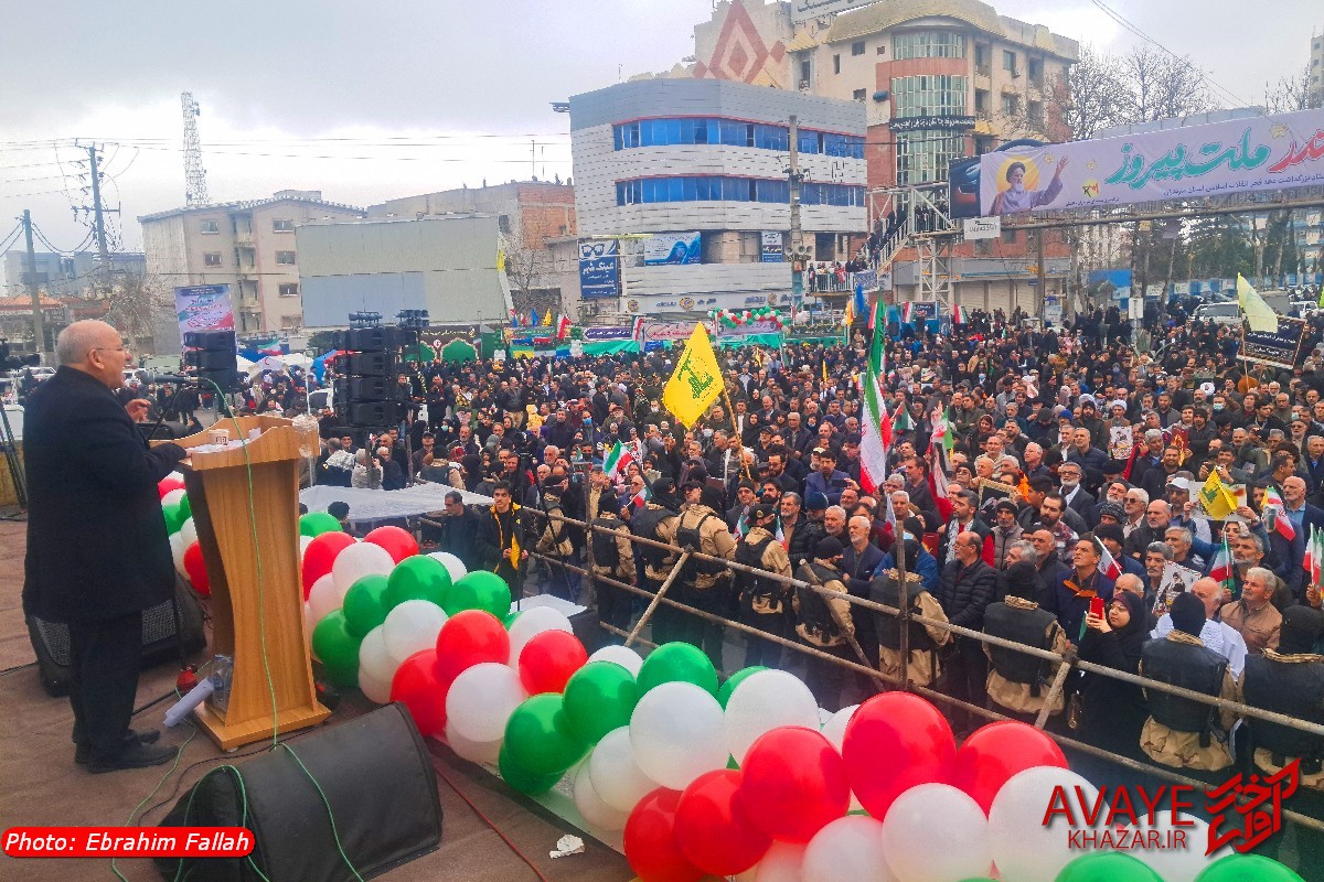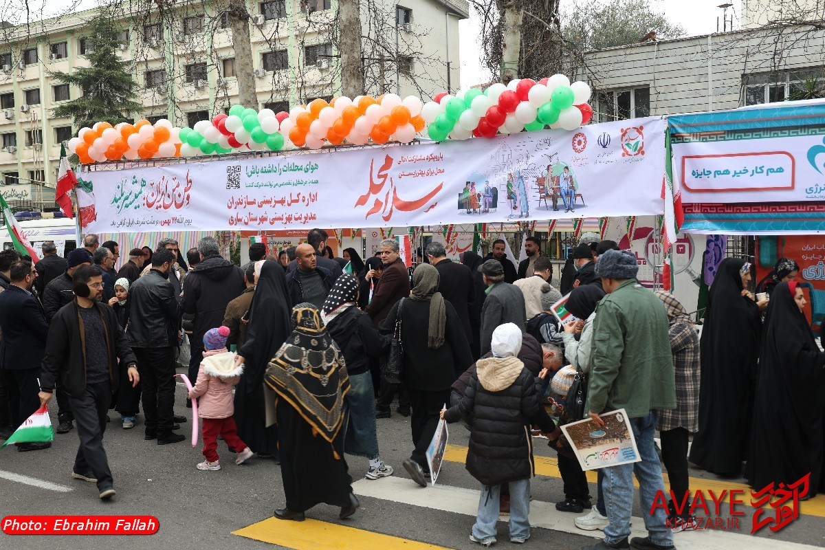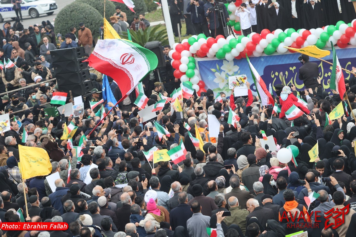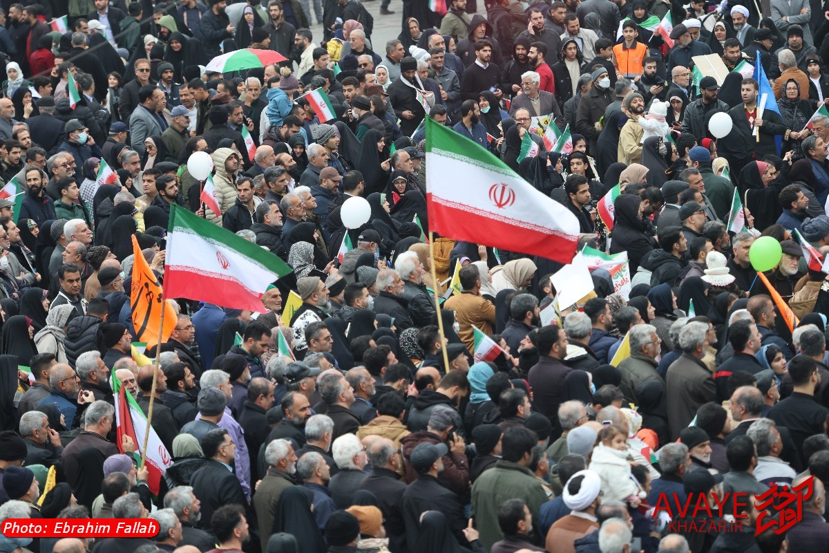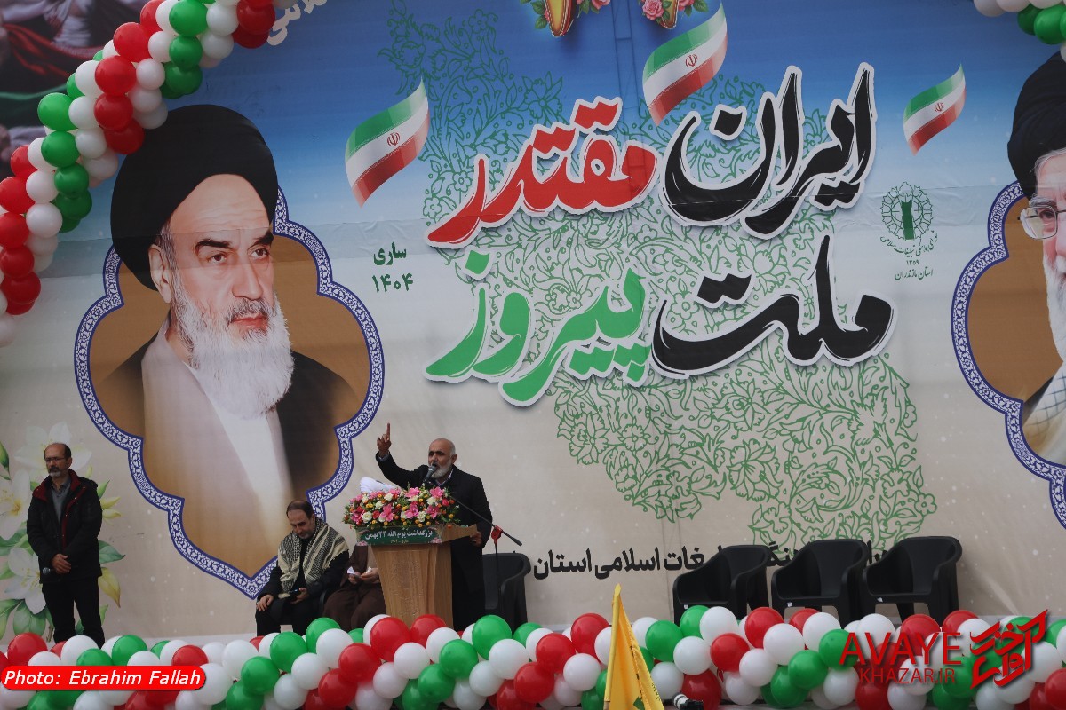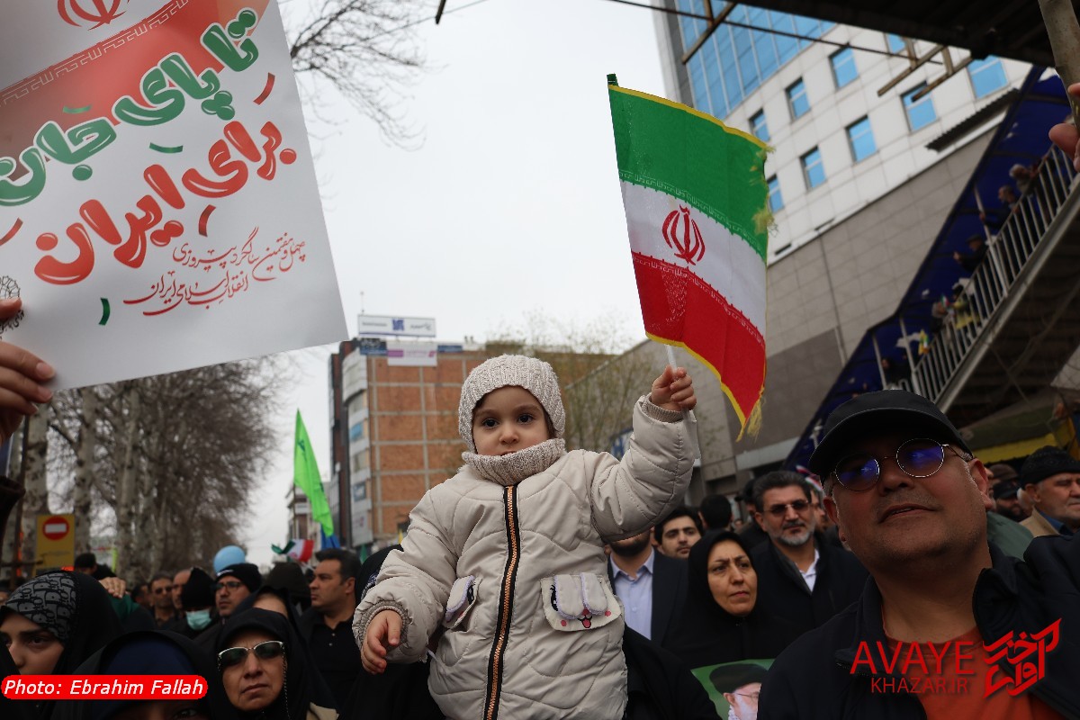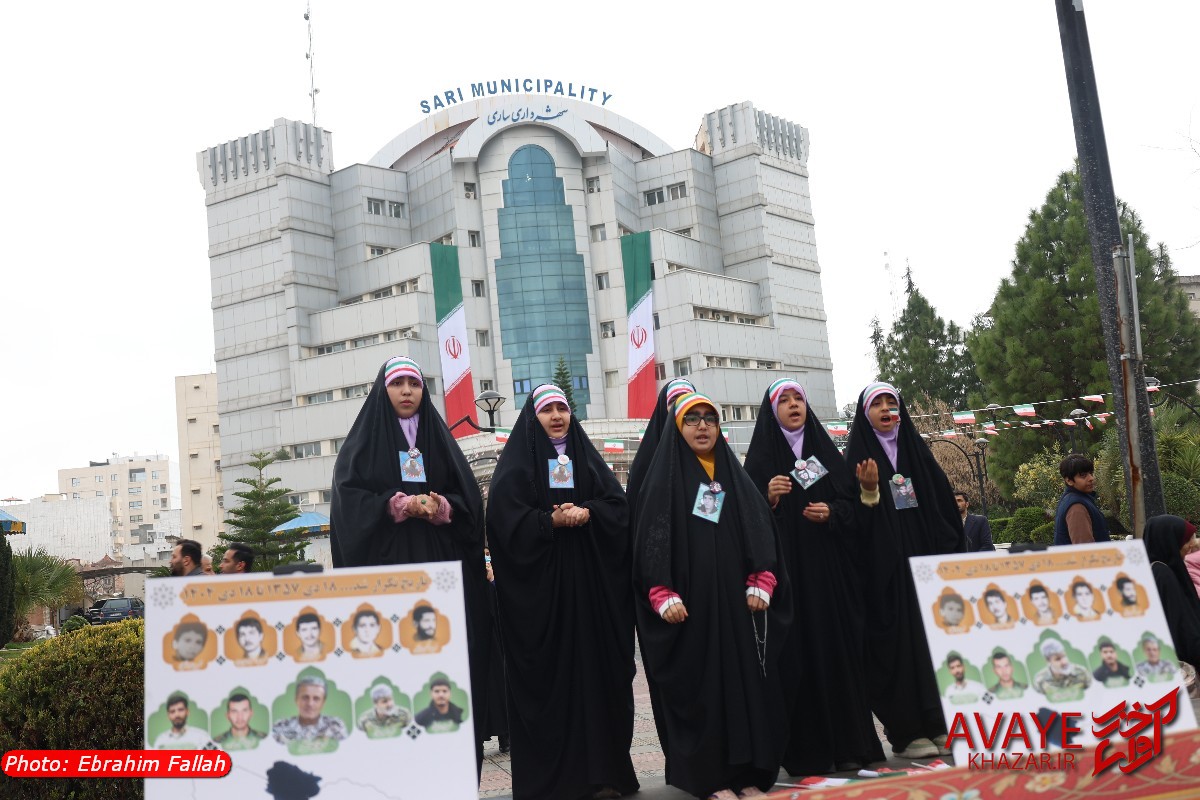 آوای خزر – راهپیمایی یومالله ۲۲ بهمن ۱۴۰۴ صبح امروز در ساری با حضور گسترده مردم از تمام سنین و اقشار برگزار شد و خیابانهای منتهی به مسیر راهپیمایی مملو از جمعیت شد. خانوادهها، دانشآموزان، دانشجویان و کارکنان دستگاههای اجرایی با در دست داشتن پرچم ایران و پلاکاردهای انقلابی، شعارهایی در حمایت از آرمانهای انقلاب سر دادند.