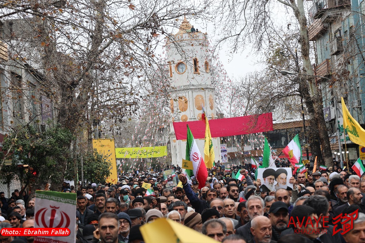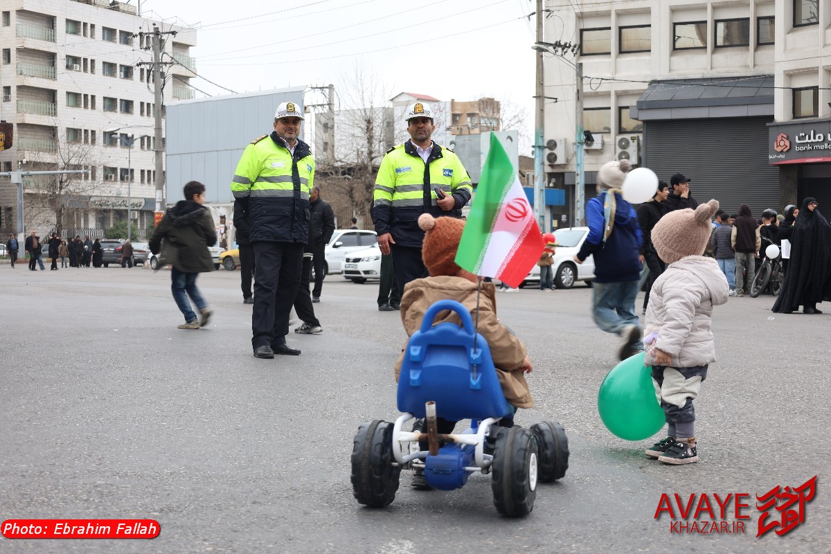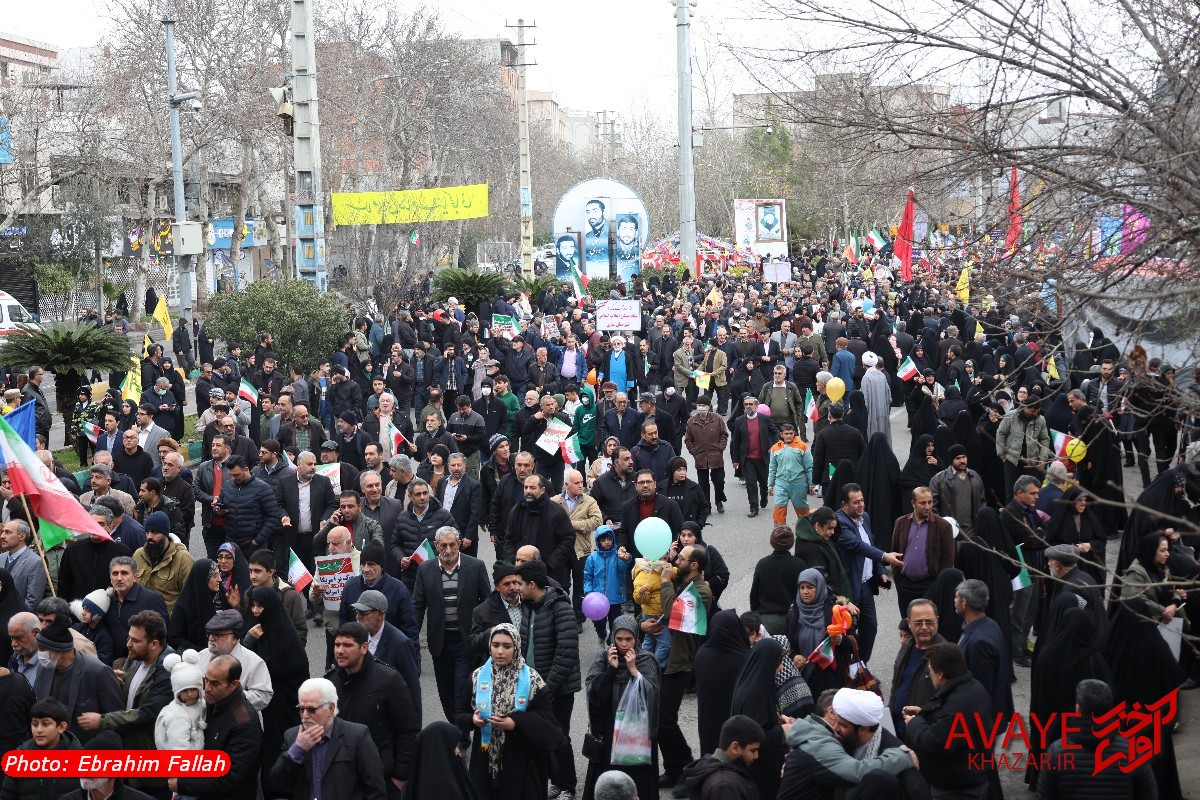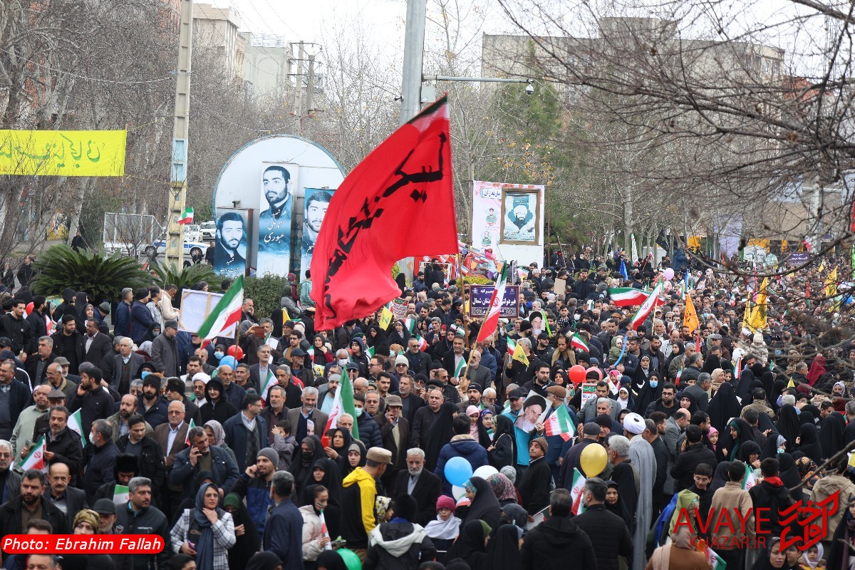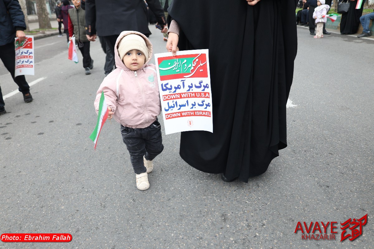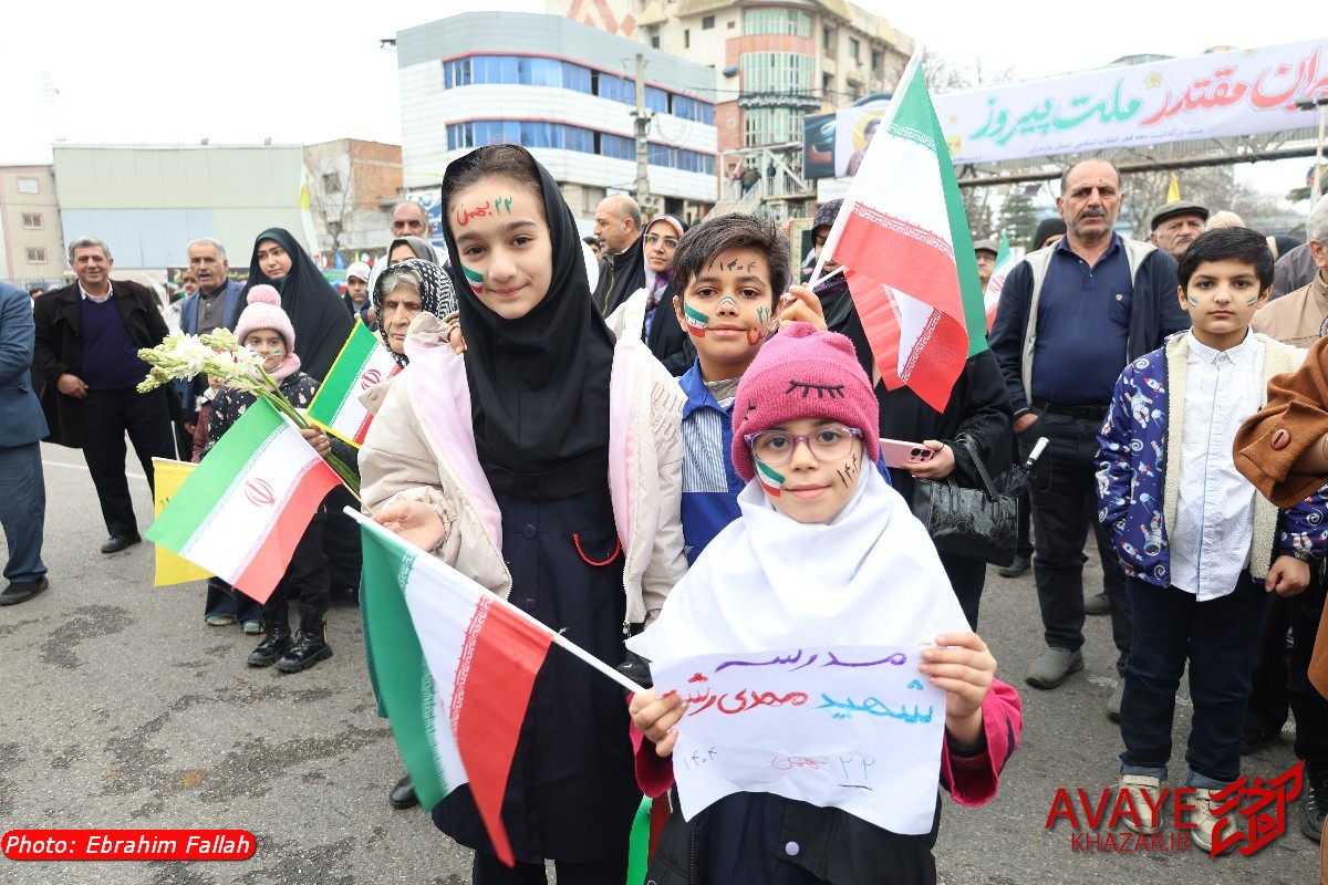 آوای خزر – راهپیمایی یومالله ۲۲ بهمن ۱۴۰۴ صبح امروز در ساری با حضور گسترده مردم از تمام سنین و اقشار برگزار شد و خیابانهای منتهی به مسیر راهپیمایی مملو از جمعیت شد. خانوادهها، دانشآموزان، دانشجویان و کارکنان دستگاههای اجرایی با در دست داشتن پرچم ایران و پلاکاردهای انقلابی، شعارهایی در حمایت از آرمانهای انقلاب سر دادند.